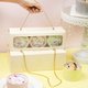 【包裝材質】:外包裝提盒+金屬鍊子+三款兔子小禮盒。響應環保,未提供紙袋。