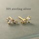 這款精緻細膩的耳環由一排迷你立方氧化鋯鑽石組成,鑲嵌於鍍金純銀(法國銀)材質,呈現有機的葉片或仙翼造型。耳環長度僅約 8 毫米,輕巧優雅。