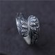 Real 990 Fine Silver Women Ethnic Rings Handmade Embossed Lotus Flower Finger Ring Opening Design Floral Jewelry Bijoux