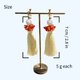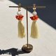 鮮やかなレッドのフラワーパーツに、ホワイトビーズとライトイエローのタッセルを合わせ、耳元に明るく華やかな印象を添えました。