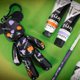 套組內含小黑熊公仔、橘色與紫色壓克力、夢幻紫水彩筆以及小罐夜光壓克力