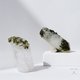 這次挑選了兩個特別的綠簾共生白水晶 第一顆晶體內部下方夾著雲霧 雲霧之上尖頂透亮 四周散落著綠簾共生 平放於桌上臥躺看著世界 . 第二顆晶體內部透亮上下夾著雲霧 很像穿梭於雲霧之中的景象 特色之處在於尖部與綠簾共生的”佛頂涅槃” . 涅槃水晶是指經歷多次造山運動及地殼擠壓,水晶被破壞修復後,刻痕呈現蝕刻和熔融的紋路,其豐富的樣貌類似佛頭,所歷經修練的過程如涅槃重生,是一種擁有强大精神力量的石頭,具有非常强勁淨化效果 涅槃水晶的經歷同時可以幫助我們開發靈性的層面,提高使用者的洞察力和思考能力,在學習不同的課題的時候帶來各種靈感和啟發。非常適合在靜坐冥想時手握以及放在睡床旁邊,帶來靈感與指引方向。 . 綠簾石(epidote),源於希臘語epidosis,意為增長,指的是祂晶體一面比另一面長,屬於單斜晶系,常以柱狀呈現,柱面上有縱向條紋,顏色以黃綠至綠黑色居多,含鐵量愈高顏色愈深,每個綠簾都自帶風景,擁有強大自然治癒力,能調和身心、消除不安與憂鬱、增加現代都市人與大自然的連結,由於產量稀少,也是喜歡意境感礦石的玩家必收藏 綠簾石對應於心輪,能使我們不再逃避、勇敢面對困難,引領我們更專注於自我的目標,進而改變與實踐。 #RR069 ◆產地|四川 ◆脈輪|心輪、第九輪 ◆五行|缺木者 ◆生命靈數|0、4 ◆淨化方式|月光、流水、音樂、薰香 ◆推薦對象|夢想家、創業者、領導管理階層 ◆適用| -找尋靈感 -自我挑戰 -改善逃避問題 -實踐目標 -清理負面情緒 -與自然連結 ⚠️產品尺寸為手工測量,存在部分誤差 ⚠️所有照片均為產品實物拍攝,照片可 能會有部分色差 ⚠️原礦都是自然呈現的樣貌,小磕碰、天然牙損、色差或小晶體剝落都是可能發生的狀況,若無法接受者請勿下單 ⚠️其他問題歡迎私訊小編