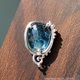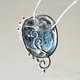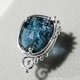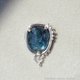 ボタニカルなイメージの縁取りに、深いブルーのモスカイヤナイトをセットしたブローチ。