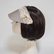 小ぶりなバイザーがカチューシャと一体になっています。細かなストライプの模様の入ったコットン&シルクのやわらかな素材に優しい色合いのベージュのトーションレースの飾り。
