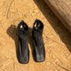 本品選用全粒面小牛皮製作,黑色牛皮粒面清晰,富有顆粒質感,奶白色小牛皮軟糯輕盈,上腳輕若無物。4cm小粗跟穿起來輕松穩健,即使不常穿高跟鞋也能順利過度,無需適應期。