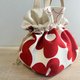 - 鮮紅大花綻放於潔白底布之上,彷彿初春裡的一句柔語。 搭配自然棉麻色束口,溫潤中帶有力量感。 以日本厚棉貼襯結構製成,袋身硬挺有型,是可愛又實用的日常小提包。