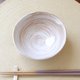 白い刷毛目模様の間から覗く土の色彩は優しく、温もりを感じられる器です。