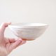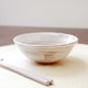 きめが細かく優しい土味の赤陶土を、柔らかな曲線の飯碗に成形後、白い化粧泥で刷毛目模様を施し、艶やかな透明釉をかけて焼き上げました。