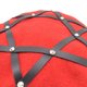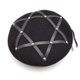 合皮ベルトでかたどったヘキサグラムが目をひくベレー帽。