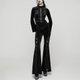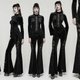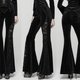 經典的哥德藝術喇叭褲。採用彈力絲絨和蕾絲製作。優雅喇叭褲型結合性感蕾絲展現高雅氣質。腰部壓褶工藝細節增加設計感更具獨特性。後有實用貼袋。