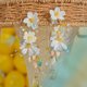這款大花耳環散發著獨有的氣勢和自信,色調清新怡人。耳環上點綴著精緻的雛菊花朵,配上淡雅的色彩,整體設計自然又清新。垂墜的設計使每個細節隨步伐輕盈搖曳,增添了不少靈動與優雅。