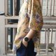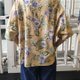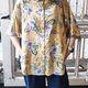 - Short-Sleeve Shirt, Printed Cotton Linen, No Armhole Design, High Side Slit