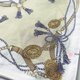 Vintage scarf featuring an elegant rope and tassel motif combined with ornate gold medallions and chain details. The symmetrical design in soft beige, ivory, and gold tones creates a refined and timeless aesthetic.