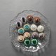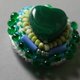 小さな作品を作るとき、まずメインのビーズを選びます。 そのビーズがいちばん美しく見えるように、隙間なく刺繍を重ねていくと── 色とりどりのビーズたちが、まるでおしゃべりしているような、にぎやかな仕上がりになります。