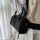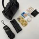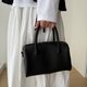 - 包包採用了荔枝紋紋理的黑色頭層牛皮,包包有一定厚度,所以包身自然立挺,包包內部是條紋棉布,有一個拉鏈內袋和一個小口袋。包包的肩帶是手工縫線,堅持我們店鋪一直以來的設計和工藝。 這是一個迷你款的手提包,能放比雨傘小的東西,適合輕裝出門使用!