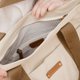 - 米灰脫水純棉布料,復古文藝,手感柔軟舒適; 深卡其織帶,把前袋分成三個豎口袋; 包包內部結構,一個拉鏈暗袋,兩個小口袋,分層合理,滿足日常使用;
