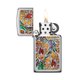 此款設計為Zippo火焰圍繞著彩色漩渦,並透過高拋光工藝使表面更加透撤,並藉由彩色成像技術使表面具有七彩玻璃的色澤