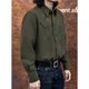 RED TORNADO 此款靈感源自RRL的古著音樂家襯衫Embroidered Western Shirt,深綠色300g全棉布料,算是比較厚實的襯衫,版型使用RRL 音樂家襯衫版型,經典帶有西部風格,復古鎖鏈刺繡低調中帶著質感,五金是加厚高邊珠光寶石扣,全埋夾縫製工藝,是一件經典好穿的西部襯衫,簡單搭配簡單有型。
