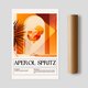 《夕陽氣泡酒 Aperol Spritz》以琥珀橙與金黃色層次構成,重現義大利經典開胃酒的明亮氣息。畫面中,透亮的酒液與冰塊折射著午後陽光,彷彿一場關於悠閒與愉悅的光影對話。