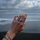 925銀 月光石 開口戒指 月光石是冰長石和鈉長石的混合組成, 形成了獨特的「月光效應」, 反射出如月光般的白色或藍色的光暈。 內部如冰絲,如月亮的紋理, 一邊閃著淡藍如月的光。 月光石有助散發個人魅力,吸引心靈相近的人, 常被認為可以吸引「靈魂伴侶」,守護愛情功效。 │ 材質及尺寸 │ - 925銀 / 月光石 - 尺寸:開口戒可調式