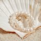 珍珠圓潤光澤與金色OT扣相得益彰,整體設計簡約大方,兼具經典優雅與時尚感,適合多種場合佩戴或送禮。
