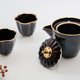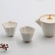 鑲上金邊的花瓣狀壺杯,泡茶時,感受壺體的細緻手感;品茗間,眼觀不同茶種的色澤與光亮;就口後,由喉間體會花型杯帶出的流暢茶湯。