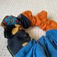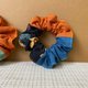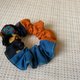 三拼荷葉髮圈 / 甜甜圈髮圈 / 和風花卉 - 藍橘 - 髮夾/髮圈 - 棉.麻 藍色