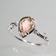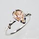 光の角度でオレンジ色に輝くこの石を、唐草の細身のアームにセットしました。