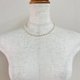 こちらは貝素材の原玉に、オリジナルカラーのパール塗料にて何層にも渡り重ね塗りを施した当店オリジナルカラーの日本製貝パールネックレスです。直径約5.5mmと約3mmの貝ベビーパールを使ったデザインで、長さは標準的なプリンセスサイズの全長約42cmで仕上げました。フォーマルにも普段使いにもお使い頂きやすい仕様となっております。パールカラーはきめ細かい質感と優しい艶感が特徴の薄目ベージュパールになります。