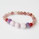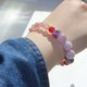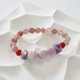 【特徵】運用了形狀各異的天然晶石製成的晶石手串。赤紅色的草莓晶與紅瑪瑙包裹著紫晶,整體顏色鮮艷,給人活力與動力。長期佩戴能幫助人養生和理療。能治癒身心,提昇人的各種運氣。