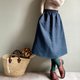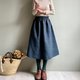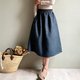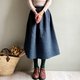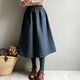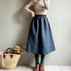 挪威森林/藍綠條紋雙層棉開叉口袋中長裙/A字裙