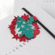 「くるみ割り人形」を奏でる音符をシルバーグリッター、音符にぶら下がるサンタを刺繍で表現しました。 グリッターにキラキラと光が反射する煌びやかなデザインです。 がんばって音符にしがみついている姿にくすっと笑ってしまうユーモラスなサンタがポイント。