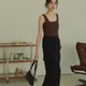 CHILL新創設計水洗霧質感後開岔牛仔裙(黑) - 裙子/長裙 - 棉.麻 黑色