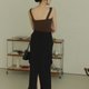 CHILL新創設計水洗霧質感後開岔牛仔裙(黑)
