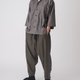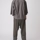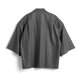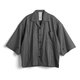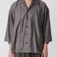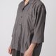 打折七分袖襯衫。台灣製純棉襯衫布,不會過薄的厚度,讓整體有一定的挺度但又不會過熱。類似於古巴領的外翻V領口,偏大的領片,整體偏休閒的感覺。細節方面前片左右各做了四個摺子,搭配一大一小的釦子,整體視覺很豐富。另外寬大的袖口可以使用釦子做三種調節。一共推出黑色跟灰色兩個顏色。