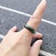 【親翠】天然翡翠 冰牛奶墨油綠超特色手指鐲14號戒圈