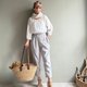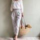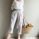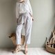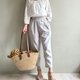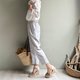 瑪黑散步/法式優雅淺灰色純棉人字織紋摺子七分褲100%棉