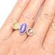 幻想的な紫のマーブル模様が特徴のチャロアイトと黄金の針が内包されたクリスタル、ルチルクォーツを組み合わせたデザインリングです。