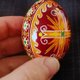 - Easter egg made of handmade wax technique: printing tools (pysachok-kistka) and wax on real chicken egg (egg in the middle of a blank), aniline dyes painted. All eggs are hand blown, washed and processed thermally. To make colors last longer pysanky are covered with several layers of UV protection.