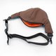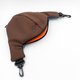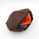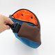 外側は耐久性の高いポリエステル、口のなかはオレンジ色のナイロン。目の裏側には取り外し可能なポケット付き。