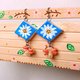 藍天白花 手作黏土耳環 手繪捏製 不銹鋼 吊墜款 - 耳環/耳夾/耳骨夾 - 黏土 藍色