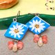 藍天白花 手作黏土耳環 手繪捏製 不銹鋼 吊墜款