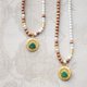 天然珍珠老山檀翡翠佛項鏈,天然邁索爾老山檀圓珠,搭配天然珍珠、925銀鑲翡翠佛,925銀六字真言隔珠,金屬配件皆為925銀材質