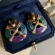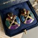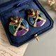 80-90年代西洋古董,海軍宮廷風奢華琺瑯耳夾耳環,美麗的高彩度配色在光澤下非常搶眼,海軍風元素為當代具代表性的設計。