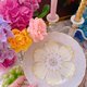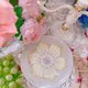 鵝黃色花卉,橘色的花蕊為立體手繪