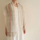 羽衣のように 軽く美しいストール。 コットン、リネン、シルクの糸を手織り、 ひとつひとつ心をこめて制作しています。 白地にカラフルな糸が美しいストールです。