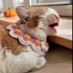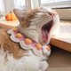 Crochet pet collar It is in the shape of a full moon. Decorated with crocheted flowers and tied with a bow. Can be worn both in the front and in the back.