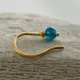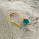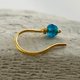 目の覚めるようなネオンブルーの美しい宝石:天然アパタイトをK24純金のフックに繋げた