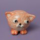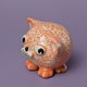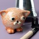 一個陶瓷娃娃,設計為Dao Fat,Orange Cat,Chao Leh是手工製作的陶瓷作品手工模製