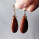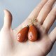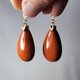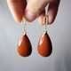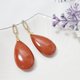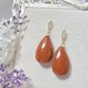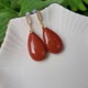 嚴選近代新興寶石非洲紅碧玉,磨製**大器**水滴墜飾,寶石**橘紅富貴祥瑞**,可見細膩黑、白玉化紋理交織,點綴以葉形(**一葉成功**)墜釦、長方稜形鑽耳針飾,顯富貴穩重,**紅運當頭**。